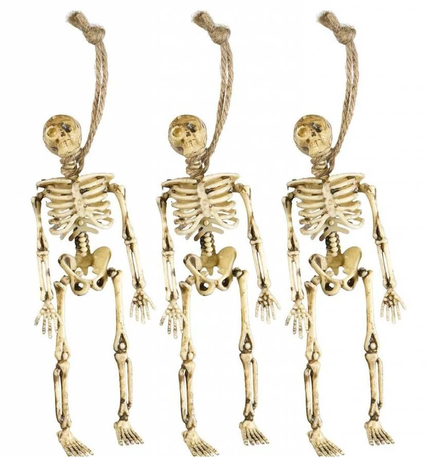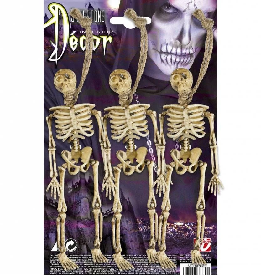 Dit zijn 3 hangende skeletten 15 cm lang als horror gadget voor halloweenvierders die met Halloween luguber uit de hoek willen komen. Deze feest attributen zijn speciaal geselecteerd voor de meest huiveirngwekkende Halloween party’s die je maar kunt bedenken. Deze hang skeletjes kun je als horror decoratie gebruiken bij griezelfeesten en Halloween party’s Kijk maar eens rond in deze horror winkel boordevol met macabere Halloween feestkleding en Halloween accessoires.