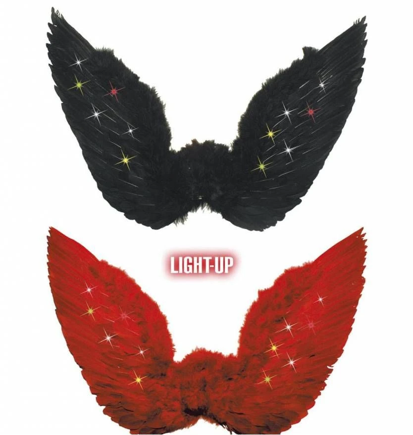 Engel of duivel vleugels met veren voor en licht