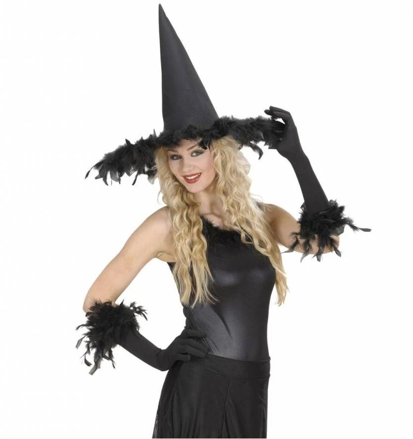 Halloweenaccessoires Handschoenen Met Veren Zwart
