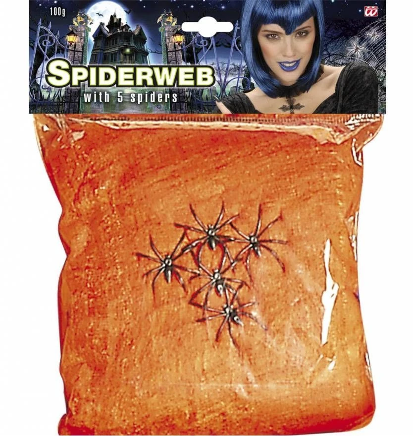 Halloweenaccessoires Spinnenweb Oranje 100 Gram Met 5 Spinnen
