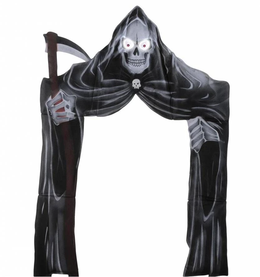 Halloweenartikelen Deurdecoratie Grimreaper Met Lichtg. Ogen 208x147cm