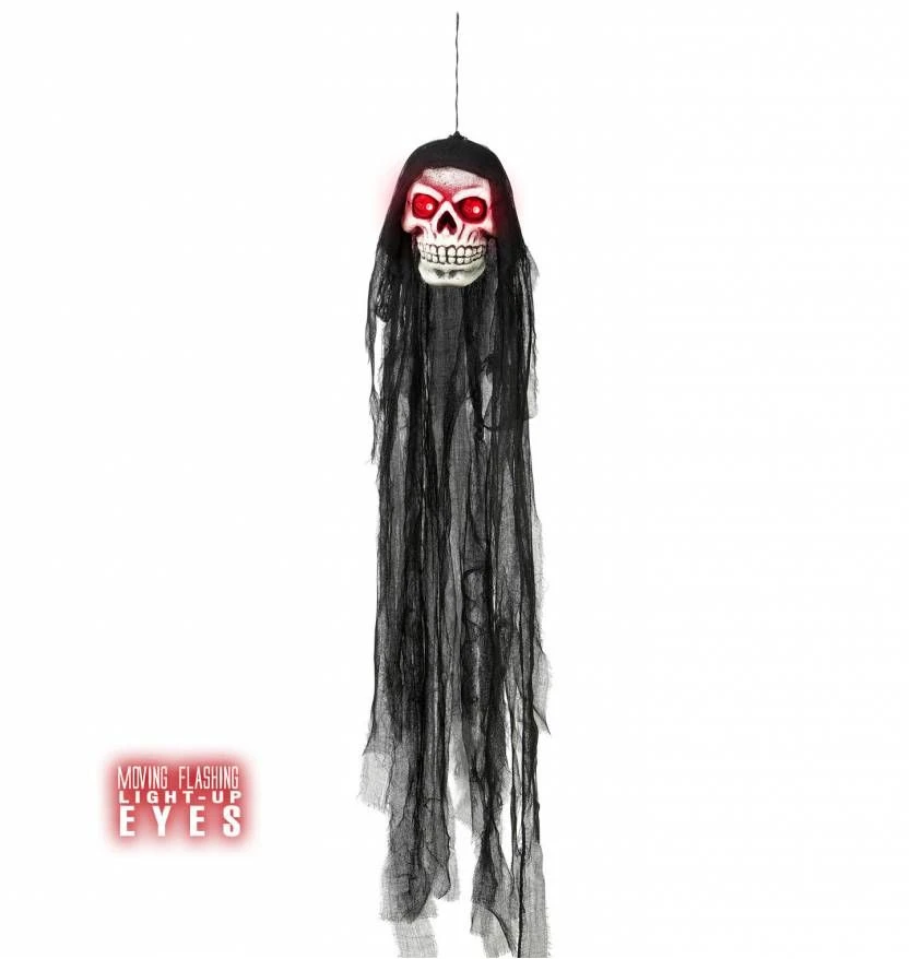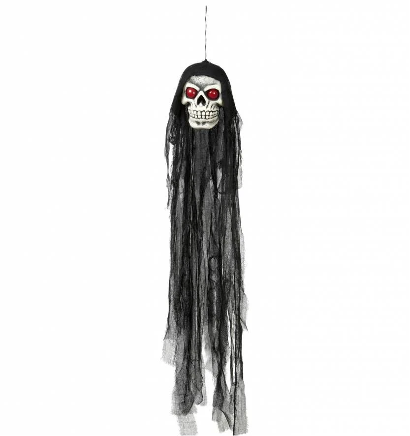 Halloweenartikelen Schedel Met Flikkerende Ogen En Kap 90cm