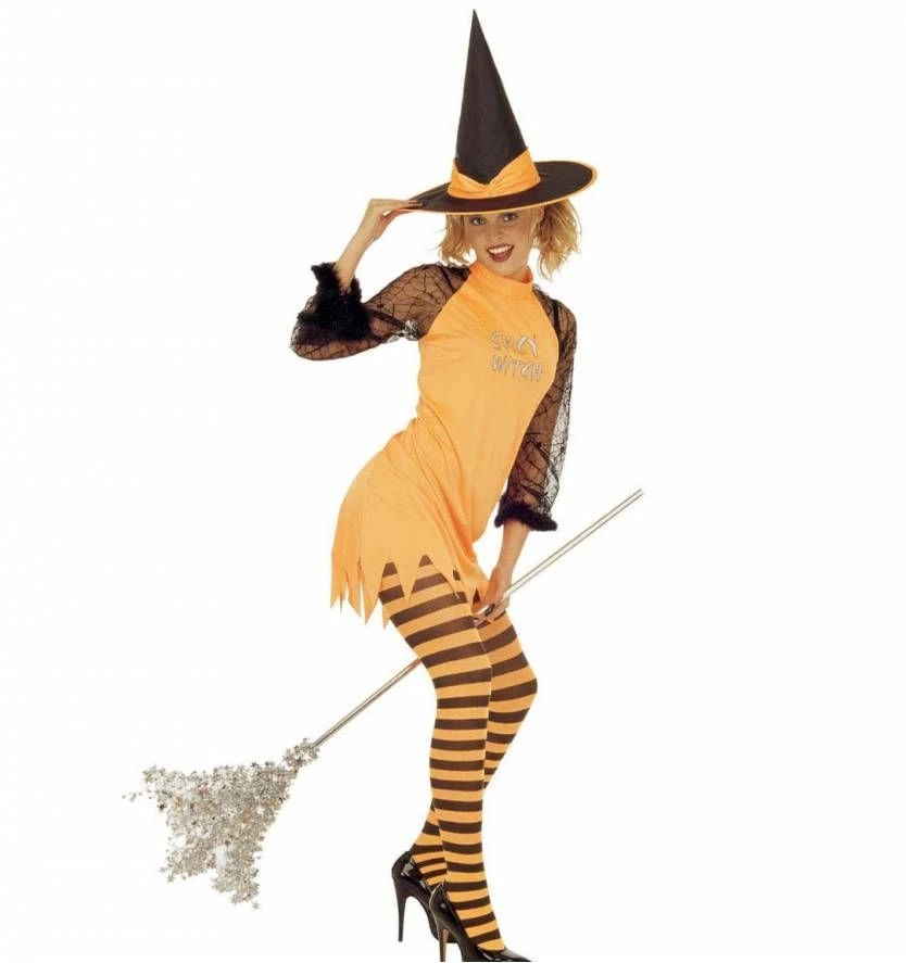 Dit is een stylisch heksenjurk voor dames. Voor vrouwen vind je in deze heksenwinkel sowieso heel veel heksenjurkjes en heksenpruiken. Halloween feestje of een andere griezelparty, geen probleem het grappige heksenjurkje voor je feestje vind je hier voor weinig geld.