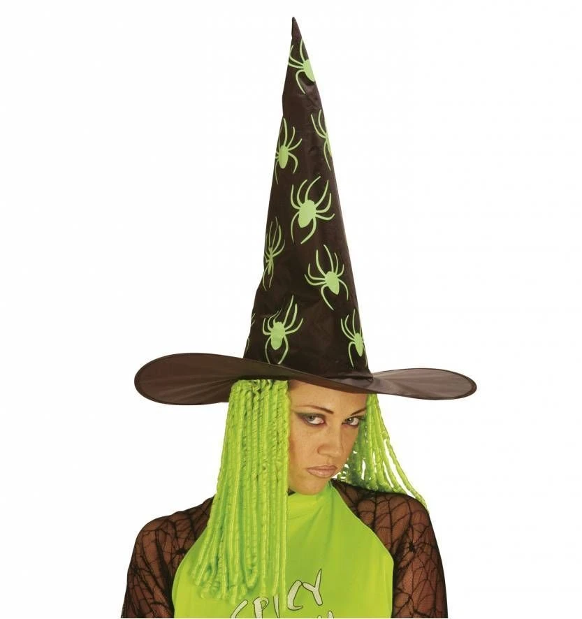 Dit is enge heksenhoed met spinnen. Een heksen hoed die het slechtste in je los maakt. Noemen ze je een boze heks het klopt, je hebt de toverspreuk in je met deze vreselijke heksenhoed met spinnen voor Halloween. Kijk maar eens rond voor nog veel meer opzichtige heksenhoeden in de ze Halloween hoeden en petten winkel boordevol met heksen hoedjes en nog veel meer macabere Halloween hoeden in allerlei kleuren.