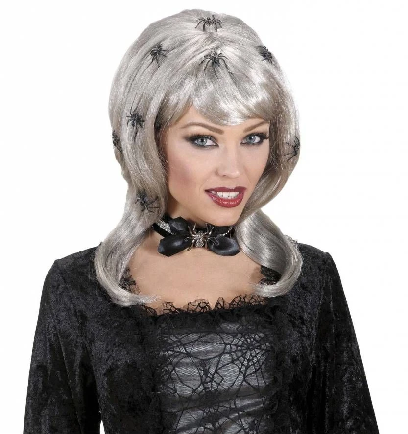Dit is heksenpruik Spiderlady met spinnen. Een heksenpruik die het slechtste in je los maakt. Noemen ze je een gemene feeks, het klopt, je bent een feeks met deze wilde heksenpruik voor Halloween. Kijk maar eens rond voor nog veel meer opzichtige heksen kapsels in de ze Halloween pruiken winkel boordevol met heksen pruiken, vampieren pruiken, duivels kapsels en nog veel meer gemene Halloween pruiken met allerlei kleuren haar.