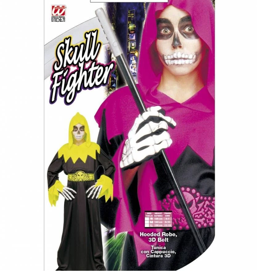 Deze schedelvechters kostuums met 3D ribben voor kleine jongetjes zijn flitsend voor Halloween en andere griezelfeesten waarbij een eng spokenpakje wenselijk is voor de juiste griezelsfeer. Dit kinder grimreaper pakje is mooi en tegelijkertijd doodeng. Zoek er de juiste schmink en grimeerspullen bij en je kent jezelf niet meer terug in dit doodenge Halloween kostuum. Voor nog veel meer Halloween spullen moet je maar een grasduinen in dit Halloween spookhuis vol met halloween griezel attributen.